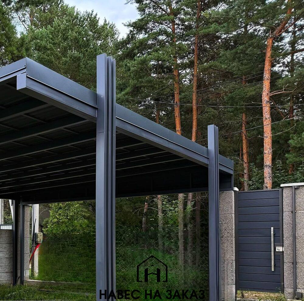 Навес для 2 авто с односкатной крышей в современном стиле