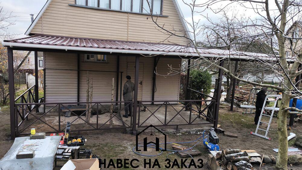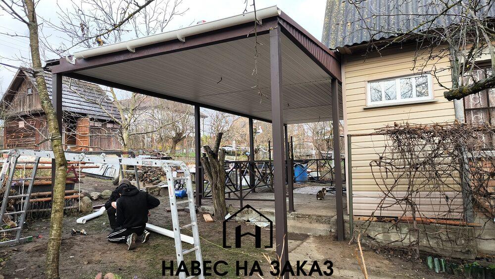 Пристроенный односкатный навес из металлочерепицы